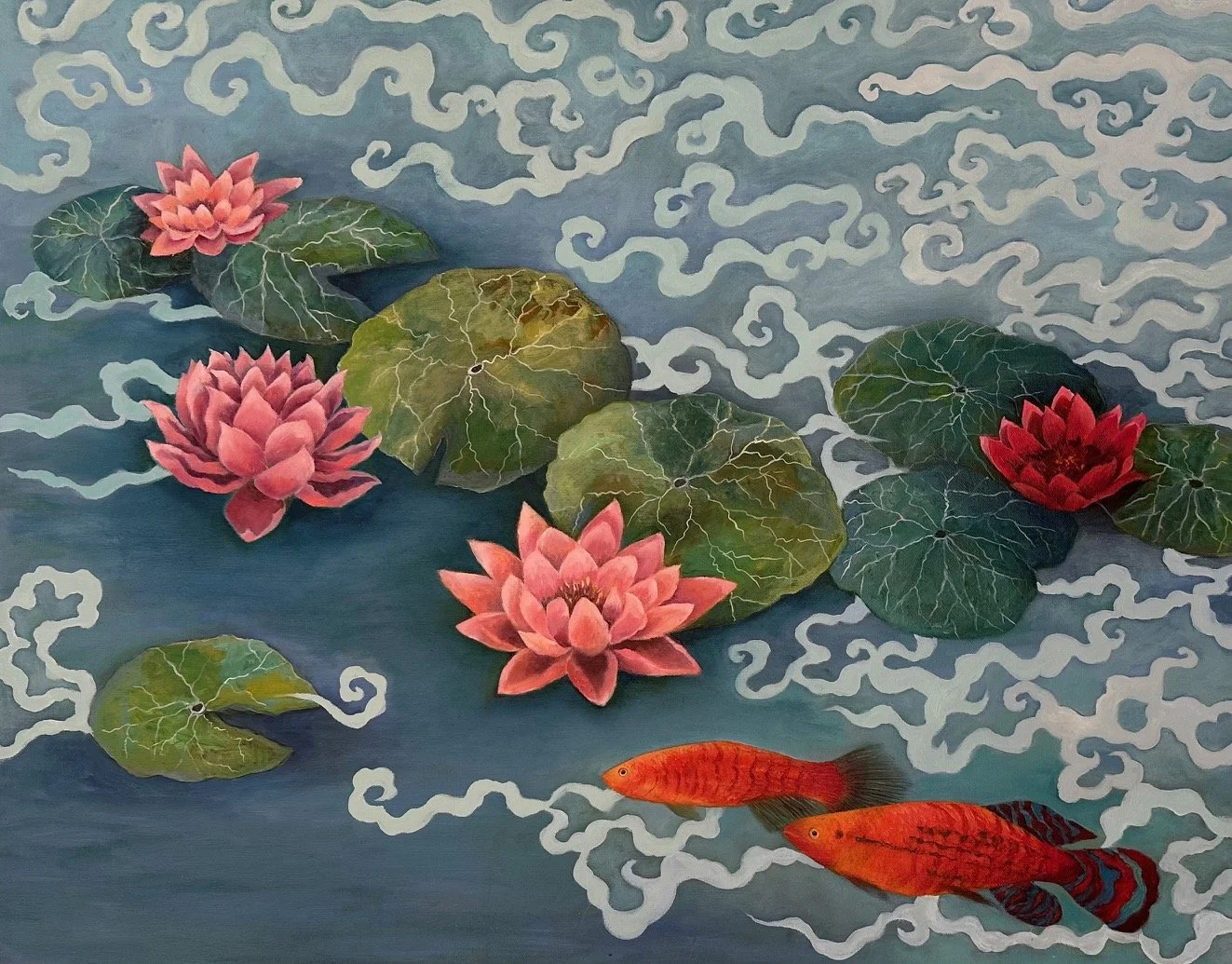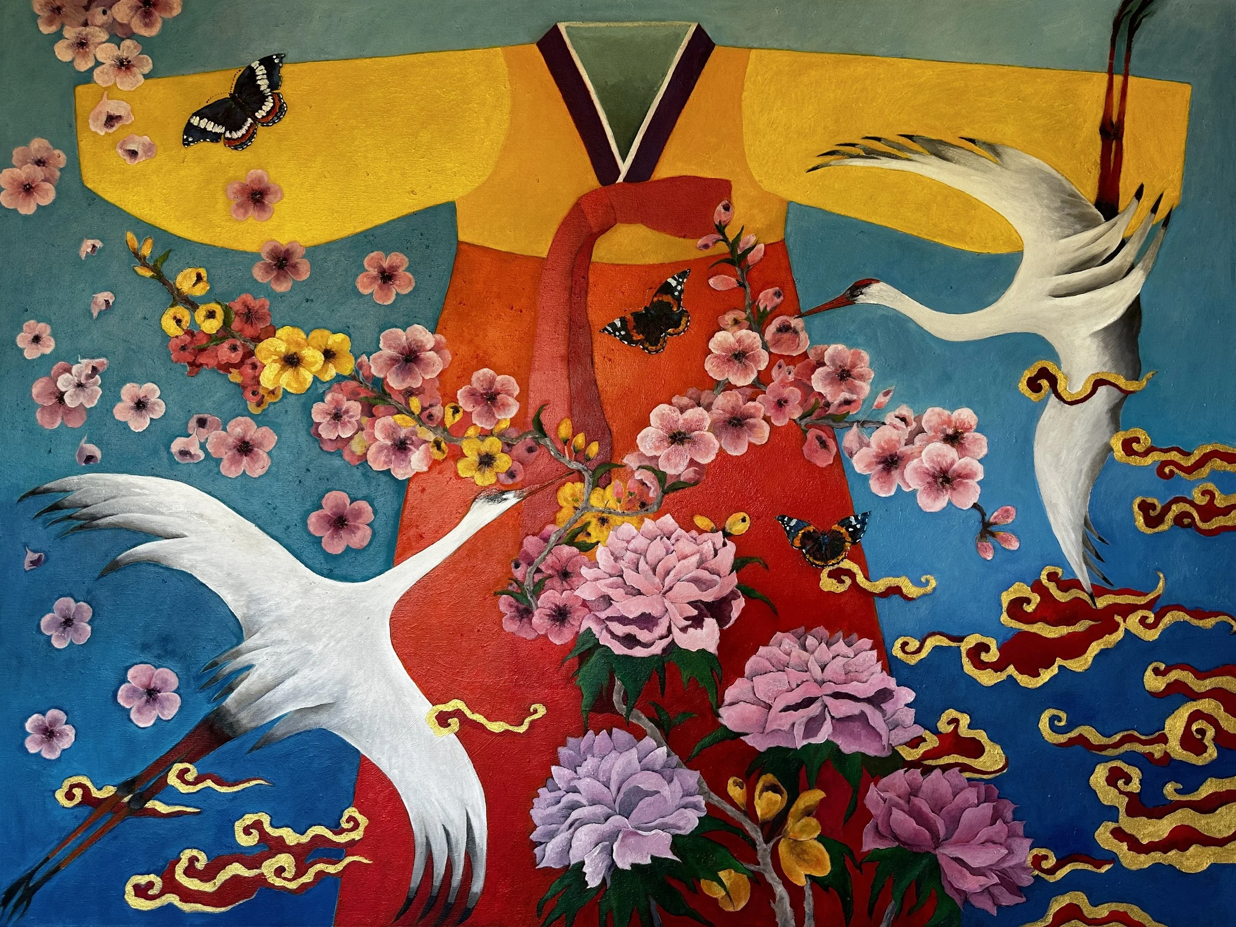 ”My painting inspirations come from nature. I want to capture the beauty of life’s fragile and tangible moments around me. My art is based on Korean mythology, symbolism, and the beloved storytellings of my late Grandmother. Also, Korean fork art influenced my work.